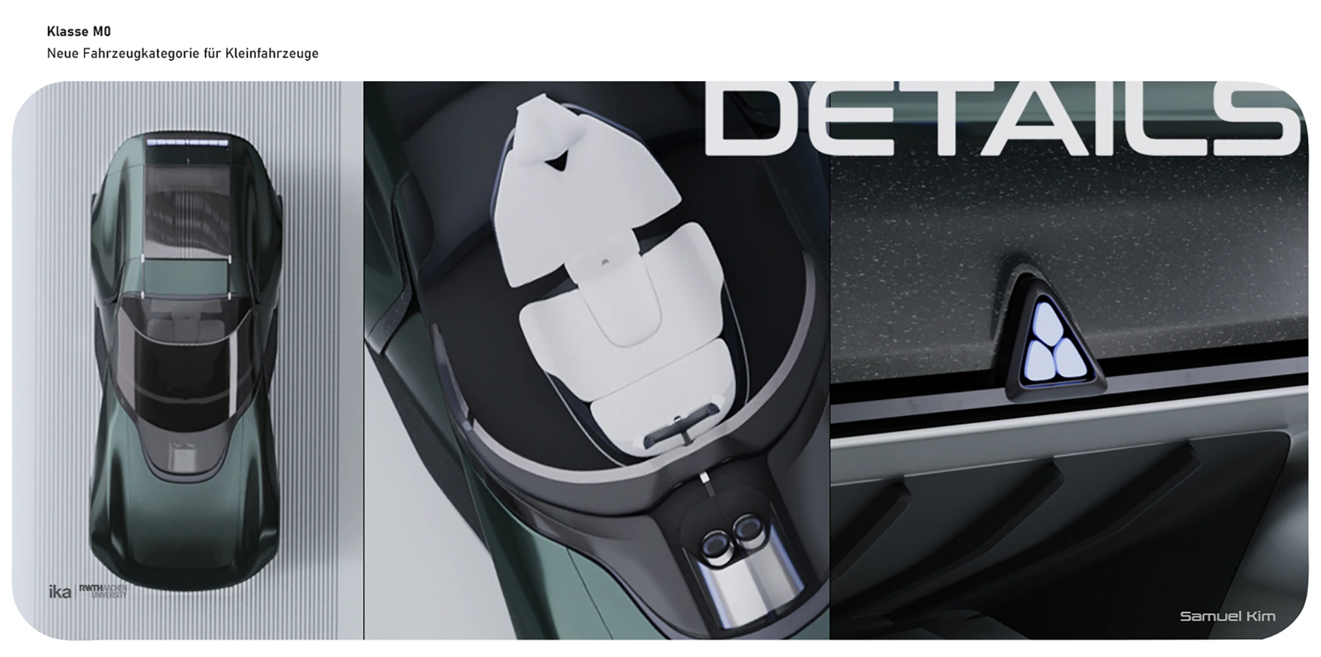 Der gesamte kreative Prozess entwickelt sich ab der ersten Skizze auf weißem Blatt Papier, über Definition harmonischer Proportionen, Flächenmodellierung, Renderingprozess, Detail-Design, Funktionstests an Sitzkiste u.a. mit VR, bis hin zum Finish eines fertigen 1:1 Prototypen.