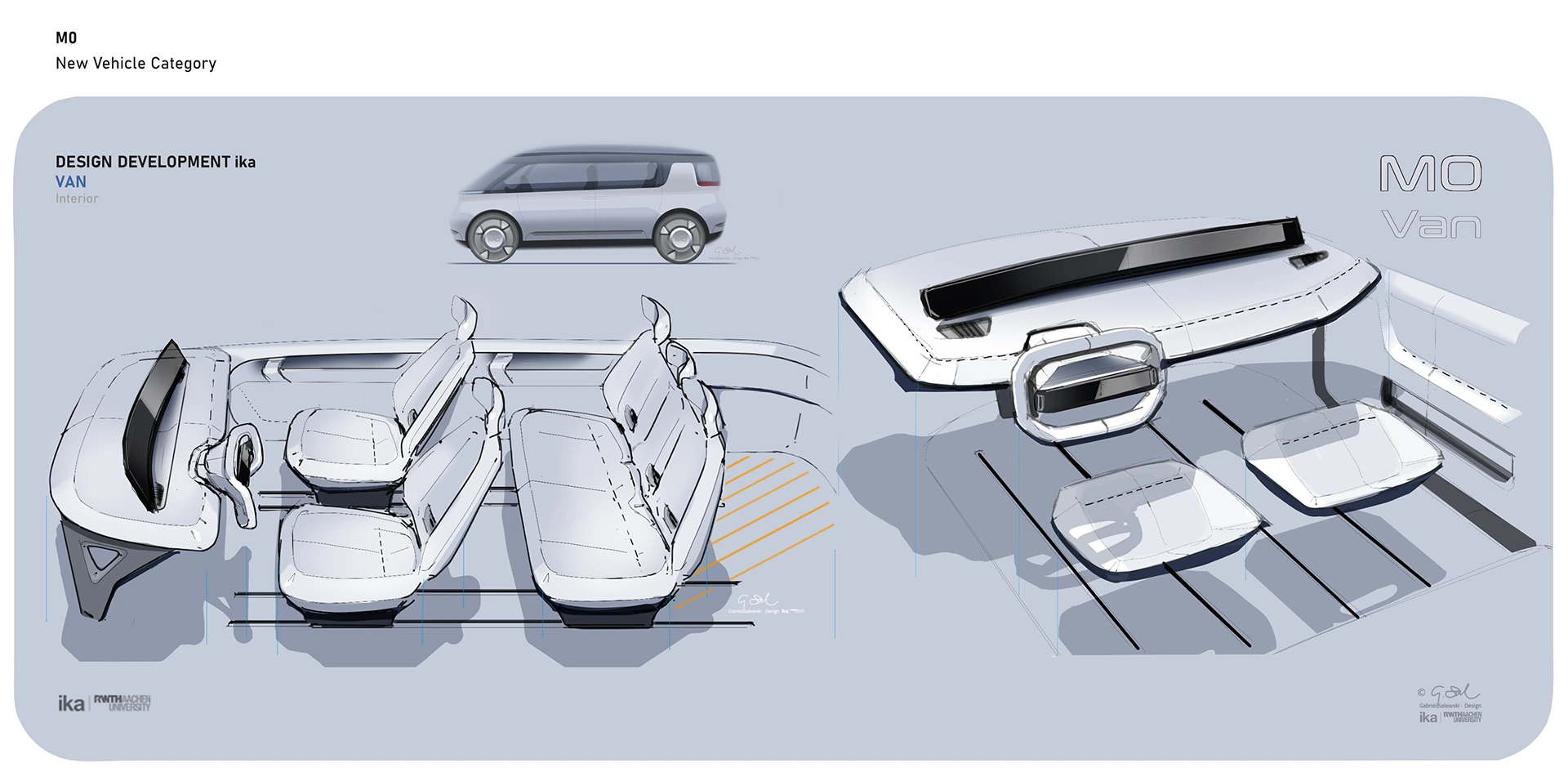 Since the exterior and interior design has a significant influence on the experience of a vehicle, when developing new innovative vehicle concepts at the ika, the aesthetic design is also considered from the outset in addition to the technical function. The entire development process is accompanied in-house by an automotive designer with a degree in Transportation Design specializing in exterior design from the renowned Pforzheim University of Applied Sciences.